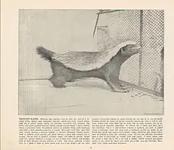 MEDOJED RATEL. (Mellivora ratel Sparrm.) „Medojed je veselý patron“ (celá zábavná stať z roku 1900 je přepsána v popisku obrázku).