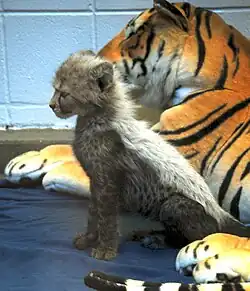 Zbarvení gepardích mláďat je nápadně podobné medojedímu. Zřejmě jde o jeden ze způsobů ochrany před predátory