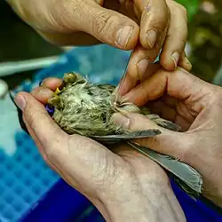 - ↑ EWEN, John G.; ARMSTRONG, Doug P. Unusual sexual behaviour in the Stitchbird (or Hihi) Notiomystis cincta: Unusual sexual behaviour in the Stitchbird. Ibis. 2002-06-20, roč. 144, čís. 3, s. 530–531. Dostupné online [cit. 2023-01-26]. doi:10.1046/j.1474-919X.2002.00079.x. (anglicky)