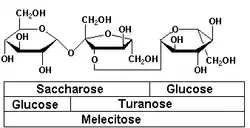 Medovice je tvořena převážně roztokem jednoduchých sacharidů: sacharózou, fruktózou a glukózou.[8][5] Kromě toho obsahuje také menší množství složitějších cukrů, jako je melecitóza,[5] stopy bílkovin a aminokyselin, minerální látky a rostlinná barviva.[8] Čerstvě vyloučená medovice obsahuje asi 80 % vody.[5]