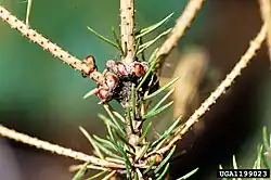 Medovnice modřínová je hojným druhem žijícím na mladých větvích. Medovici poskytuje od června do srpna.[10] V červnu a červenci tvoří medovici medovnice prýtová.[10]