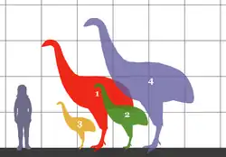 Nicméně žádný nelétavý pták žijící v kenozoiku nedorůstal hmotnosti přesahující 500 kg. A to ani predací se živící Brontornis, pravděpodobně všežravý Dromornis stirtoni či býložravý Aepyornis tak nezískali velikost největších masožravých savců, natožpak savců býložravých.[24] Rostoucí tloušťka skořápek v poměru k hmotnosti vajec se zvyšující se velikostí vajec může vytvářet horní limit velikosti ptáků. Největší nelétavý pták D. stirtoni mohl vyhynout poté, co dosáhl maximální hmotnosti ptačího těla a poté jej překonali vačnatci, kteří dorostli do několikanásobně větších rozměrů.[25]