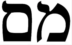 Vyskytne-li se na konci slova, má grafickou podobu ם.[2]