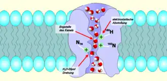 - Elektrochemický potenciál je definován jako Ψ = −Δϕ + (2,3 RT/F) log (Ckation,ex / Ckation,in) kde Δϕ je elektrický potenciál přes membránu (ve V), R je plynová konstanta (8,314 J.K−1.mol−1), T je absolutní teplota v K a F je Faradayova konstanta (96,49 kC.mol−1).