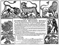 V 70. a 80. letech 19. století navštěvovaly Prahu putovní menažerie (C. Kauffmann, A. Kallenberger). Podle dobové inzerce se jednalo spíše o představení, ve kterých vystupovala exotická zvířata.[6][7]