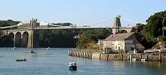 - ↑ Anglesey Menai Bridge partly reopens after repairs [online]. [cit. 2023-02-06]. Dostupné online.