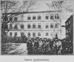 Až do roku 1910 docházeli na gymnázium pouze chlapci, hned následující rok však na školu nastupuje první dívka – Božena Davidová z Háje u Opavy. Ve školním roce 1917/1918 už je na škole vedeno devět dívek.