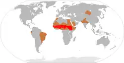 Ačkoli je meningitida v mnoha zemích nemocí podléhající hlášení, přesná relativní incidence tohoto onemocnění není známa.[12] V západních zemích se bakteriální meningitida ročně objevuje u 3 osob na 100 000 obyvatel. Populační studie ukázaly, že virová meningitida je běžnější – vyskytuje se u 10,9 osob na 100 000 obyvatel a její výskyt je častější v letním období. V Brazílii je vyšší počet případů bakteriální meningitidy – jde přibližně o 45,8 osob na 100 000 obyvatel ročně.[8] Subsaharská Afrika byla v posledních sto letech soužena rozsáhlými epidemiemi meningokokové meningitidy,[62] kvůli čemuž se jí dostalo označení „meningitický pás“. K epidemiím typicky dochází během období sucha (od prosince do června), přičemž následná epidemická vlna může trvat dva až tři roky a odeznívá v období dešťů.[63] V této oblasti dochází ke 100–800 případů na 100 000 obyvatel,[64] k čemuž přispívá i nízká kvalita lékařské péče. Tyto případy onemocnění jsou způsobovány převážně meningokoky.[8] Největší historicky zaznamenaná epidemie postihla v letech 1996–1997 celý region; tehdy onemocnělo 250 000 osob a 25 000 z nich zemřelo.[65]