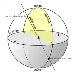 Meridián neboli místní nebeský poledník je hlavní kružnice na nebeské sféře procházející póly a zenitem pozorovatele. Z definice prochází severním i jižním pólem. Dále prochází nadirem a jižním a severním bodem (průsečíky meridiánu s horizontem). Je kolmý k horizontu.