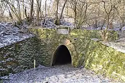 - Portál dědičné štoly Mária dlouhé 450 metrů.[16][17] Štola Mária se nachází jižně od obce Merník a šest kilometrů severně od obce Vranov na Topľou v údolí Potkanova debra potoka, který ústí do potoka Čičava.[18] Důlní dílo je pozůstatkem těžby rumělky. První pokusy s těžbou zahájila v roce 1830 hraběnka Mária Forgáchová a těžba byla přerušena v padesátých letech 19. století. Nové období intenzívní těžby bylo v letech 1923 až 1937 s maximální těžbou v letech 1932–1936, kdy se vytěžilo 32 tun kovu. V roce 1942 byl důl zatopen.[19][20][4]
