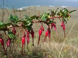 - ↑ a b PHILLIPS, Valeria. Ribes speciosum [online]. Las Pilitas Nursery, Santa Margarita, CA, USA, rev. 2014-01-22 [cit. 2023-10-25]. Dostupné online. (anglicky)