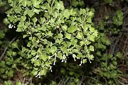 Květy jsou opylované hlavně čmeláky a včelami, v jižních oblastech i kolibříky, kterým poskytují nektar i pyl. Kvetou od dubna do června a plody dozrávají v srpnu a září, po dosažení zralosti se sesychají a opadávají. Rostlina začíná plodit ve věku asi tří let. Jen velmi málo odolává i jen nízkoenergetickým požárům, při kterých bývá vážně poškozena či usmrcena. Na stanovištích se po požáru opětovně regeneruje semenem, oheň podporuje jejich klíčení. Za slunného teplého dne rostlina vydává výraznou kořeněnou vůni. Ve stínu jen málo kvete a neplodí. Je dřevinou krátkověkou, v přírodě vytrvávají její jednotlivé části šest až osm let, obnovují se vegetativními výhonky a semeny. Počet chromozomů 2n = 16, stupeň ploidie x = 8.[1][4][5][6][7]