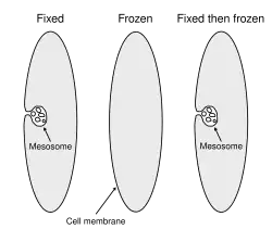 V 70. letech dvacátého století se staly mesozomy předmětem zkoumání. S postupným shromážděním informací o nich ale vyšlo najevo, že mesozomy vznikají lidskou činností během chemické fixace, kdy dochází k poškození cytoplazmatické membrány. V buňkách, které nebyly chemicky fixovány, se mesozomy nevyskytovaly. Na konci 80. let nové postupy při tvorbě preparátů pro elektronové mikroskopy (především mrazová fixace - kryofixace) jasně prokázaly, že se mesozomy v žijící buňce nevyskytují. Nicméně několik studií argumentuje, že je tento důkaz nepřesvědčivý a mesozomy nemohou být výtvorem člověka ve všech buňkách.