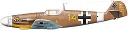 Messerschmittu Bf 109E/Trop v severní Africe. V popředí je Bf 109E-4/Trop patřící I. / JG 27, jehož pilotuje Hans-Joachim Marseille a za ním je Bf 109E-7/Trop patřící II. / JG 27