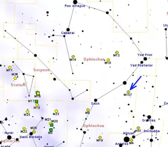 | Jiná označení | M107, NGC 6171, GCl 44, C 1629-129,[11] Mel 148[12] |