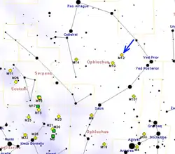 Poblíž se nachází další kulové hvězdokupy, například 3° jihovýchodně leží Messier 10 a 12° jihozápadně Messier 107.