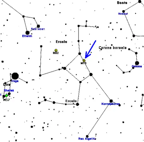 - ↑ a b c d e f Messier 13: SEDS Messier Objects Database [online]. [cit. 2017-04-06]. Dostupné online. (anglicky)