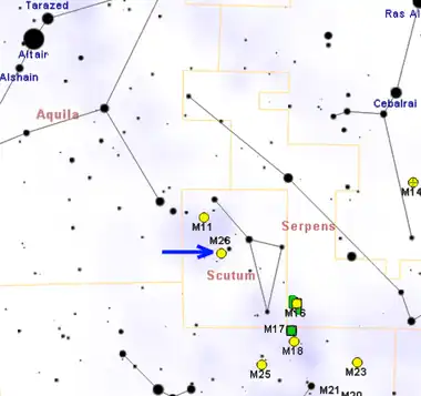 - ↑ a b c d SIMBAD Astronomical Database: Results for M 26 [online]. [cit. 2017-08-18]. Dostupné online. (anglicky)