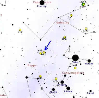 - ↑ a b c d e SIMBAD Astronomical Database: Results for M 47 [online]. [cit. 2017-01-20]. Dostupné online. (anglicky)