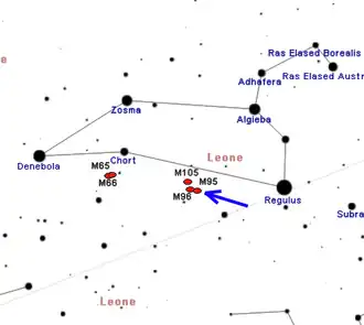 40′ východně od M95 leží M96 a asi 50′ severně od M96 se nachází M105.[10]