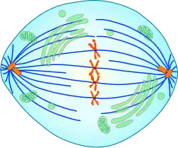 Metafáze je stádium mitózy navazující na prometafázi. V jejím průběhu se chromozomy připoutávají k mikrotubulům a řadí se do ekvatoriální roviny dělicího vřeténka. Pohyb chromozomů po mikrotubulech dělicího vřeténka směrem do středu buňky je zprostředkován kinetochory, proteinovými komplexy nacházejícími se v oblasti centromery každého z chromozomů. Zarovnání na pomyslný rovník je jakýmsi kompromisem, výsledkem tahu směrem k oběma pólům vřeténka.
