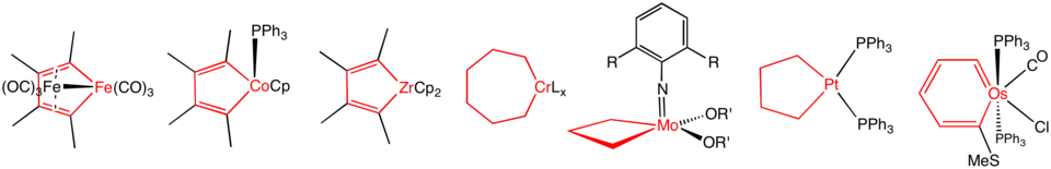Metalocykly jsou obvykle cyklické sloučeniny s dvěma vazbami uhlík-kov.[4]