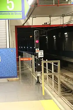 - ↑ Metro Madrid. Normativa interna de circulación. Madrid: [s.n.], 2013. 131 s. Dostupné v archivu pořízeném dne 2017-02-02. Kapitola 3 Señalización, s. 35. (španělština) Dále jen Normativa interna de circulación.
