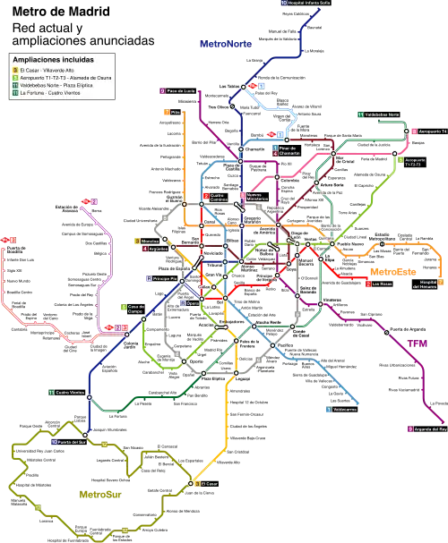 Na konci 20. století a počátku 21. století se jednalo o jednu z nejrychleji se rozrůstajících sítí, srovnatelnou například se soulskou; díky linkám 10 a 9 dokáže madridské metro obsloužit i předměstské oblasti. Otevřen byl například úsek linky 8 vedoucí na letiště či okružní linka 12 propojující města Alcorcón, Leganés, Getafe, Fuenlabrada a Móstoles v madridské aglomeraci.
