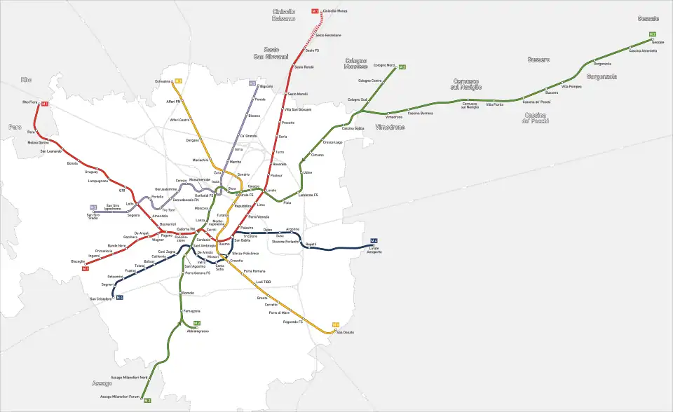 - ↑ Metropolitana Milano. www.metropolitana-milano.it [online]. 2020-01-01 [cit. 2023-02-03]. Dostupné online.