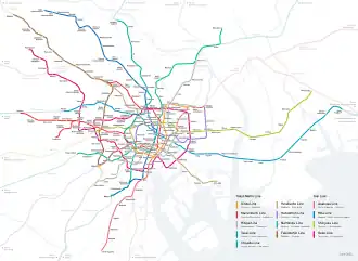 | Rozchod koleje | 1067 mm 1435 mm (Ginza, Marunouči, Toei Asakusa, Toei Óedo) 1372 mm (Toei Šindžuku) |