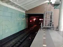 Stanice je trojlodní, obklad pilířů je z bílého a šedého mramoru a stanice je obložena zelenými kovovo-smaltovanými dlaždicemi.