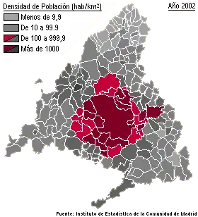 - Vnitřní kruh (primera corona): Alcorcón, Leganés, Getafe, Móstoles, Fuenlabrada, Coslada, Alcobendas, Pozuelo de Alarcón, San Fernando de Henares