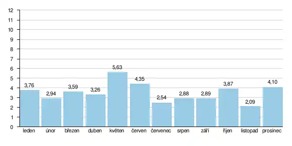 Průměrné měsíční průtoky Metuje (m³/s) ve stanici Jaroměř v roce 2014:[26]