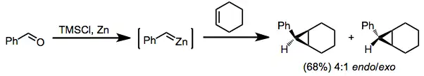 Substituované zinkové karbenoidy je možné připravit z odpovídajících ketonů či aldehydů podobným mechanismem jako u Clemmensenových redukcí. Takovéto cyklopropanace alkenů mívají střední hodnoty diastereoselektivity i výtěžnosti.[26]