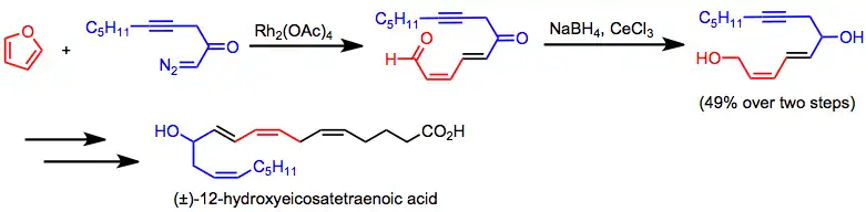 Spojení cyklopropanace a fragmentace je součástí výroby kyseliny 12-hydroxyikosatetraenové.[24]