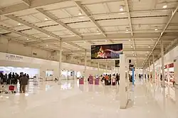 Střecha odletové haly se skládá z množství ocelových příhradových nosníků s výraznými liniemi. Naznačují cestujícím směr jejich pohybu nahoru nebo dolů přes budovu, nejprve na celní odbavení a pak do odletové místnosti na dolním patře. Vizuální jasnost však nedosáhli nedosáhli na úkor konstrukční logiky. Střecha kopíruje konstrukci pod ní a tak se minimalizuje množství vzduchu, které je třeba regulovat.