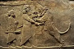 Největší památkou mezopotámského písemnictví je Epos o Gilgamešovi, který ale v samotné Mezopotámii nebyl nejspíše moc znám a neměl veliký význam v tamější literární tradici.[25] Zatím je o něm známo šest sumerských básní, z nichž pět tvoří novoasyrský epos. Kanonickou akkadskou verzi tvoří 12 tabulek.[26] Příběh vypráví o Gilgamešově životě, o jeho dobrodružstvích a neúspěšném hledání nesmrtelnosti. Epos je důležitý svým rozsahem, stavem zachování, příběhem a rozvinutou básnickou formou.[25]