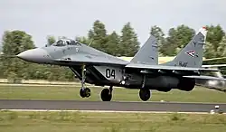 Mikojan-Gurevič MiG-29 (rusky МиГ-29, v kódu NATO „Fulcrum“) je lehký dvoumotorový proudový stíhací letoun k vybojování vzdušné nadvlády v prostoru fronty. Byl vyvinut v SSSR konstrukční kanceláří Mikojan v 70. letech 20. století. Měl se doplňovat spolu s větším a těžším letounem Suchoj Su-27, který byl zamýšlen jako protiváha amerického stroje McDonnell Douglas F-15 Eagle, zatímco MiG-29 měl být odpovědí na lehčí typy General Dynamics F-16 Fighting Falcon a McDonnell Douglas F/A-18 Hornet.[3] Do služby v sovětském letectvu vstoupil MiG-29 v roce 1982.