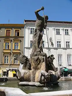 Druhou Mandíkovou skulpturou je na pravém boku ležící postava boha vodstev Neptuna, od 19. století zvaná též Moravus. Muž si pravicí, opřenou o hydrii s nevysychajícím pramenem, čechrá plnovous – přičemž levou rukou se drží za hrdlo oné nádoby. Sochu původně osadili uprostřed kašny v oddělené části Libosadu, zvané Holandská zahrada, kde se pěstovaly zejména tulipány. Mandíkův rukopis můžeme spatřit v celkové tělesné typice, podané s expresívně vykresleným svalstvem, šlachami a vráskami v kůži na trupu – tak jako v případě postavy tohoto boha na olomoucké městské kašně.