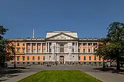Před jižním průčelím se nachází jezdecká socha Petra Velikého, kterou vytvořil Carlo Bartolomeo Rastrelli.[4]