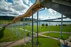Západní, jižní a východní břeh je travnatý. Na severním břehu je písčitá pláž a za ní atrakce a správní budovy koupaliště.