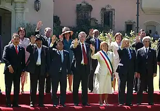 - ↑ Michelle Bachelet sworn in as Chile's president. BBC News. 2014-03-11. Dostupné online [cit. 2017-06-23]. (anglicky)