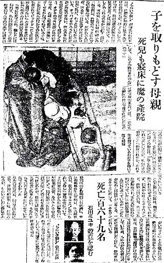 - ↑ Miyuki Ishikawa. Japonská ředitelka porodnice nechávala zemřít poválečné novorozence, od chudých rodičů za to brala peníze [online]. mall.tv, 2021-11-12 [cit. 2021-11-17]. Dostupné online.