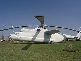 Mil Mi-6 v Ústředním muzeu vojenského letectva v Moninu. Malý vrtulník na levé straně je Kamov Ka-26.