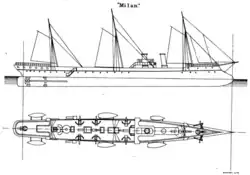 Milan byl nechráněný křižník francouzského námořnictva. Ve službě ve francouzském námořnictvu byl v letech 1885–1908. Mezi jeho hlavní úkoly patřil průzkum. Byl to poslední postavený francouzský nechráněný křižník. Zároveň byl předchůdcem francouzských chráněných křížníků tříd Forbin a Troude.[1]