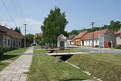- Barokní výklenková kaplička se sochou svatého Jana Nepomuckého na návsi.