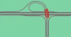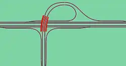 • mimoúrovňová křižovatka bez průpletových úseků (s vratnými větvemi a s vyloučením křižných bodů)