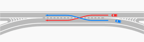 • mimoúrovňová křižovatka s průpletovými úseky (s vyloučením křižných bodů)