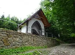 Pavilón Ottovky, v pozadí vstup do jeskyně s vývěrem pramene