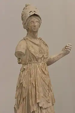 Minerva je římská bohyně řemesel, umění, moudrosti a války, ztotožňovaná s řeckou Athénou. Společně s Jupiterem a Junou byla členkou Kapitolské trojice, též byla počítána mezi Dii Consentes – dvanáct nejdůležitějších božstev. Kult Minervy, stejně jako její jméno, byl odvozen od etruské bohyně Menrvy, jež zas byla ovlivněna Athénou. Tomu, že v nejstarším období nebyla známa, nasvědčuje to, že není zmiňována v nejstarších kalendářích a ani neměla svého flamena. Kapitolská trojice vznikla též pod etruským vlivem, stejně jako Minervina moc nad blesky a vynález trubky.[1]